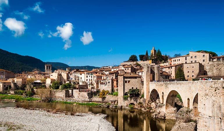 Besalú es un pueblo del norte de Cataluña, en la provincia de Girona. De este pueblo, a orillas del río Fluvià, destaca su casco antiguo. Sus estrechas calles empedradas y su impresionante puente románico te transportarán a tiempos pasados.