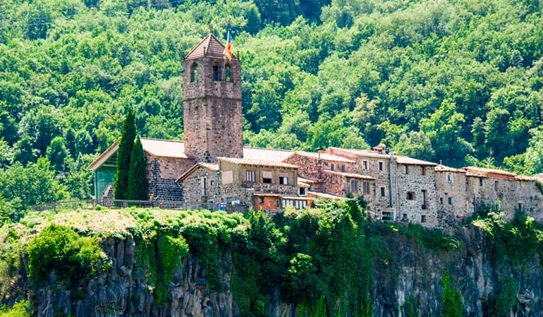 Otro de los pueblos más bonitos de Cataluña es Castellfollit de la Roca (también conocido como Cinglera de Castellfollit), en la provincia de Girona y muy cerca de Besalú. Está construido sobre un kilómetro de acantilado.